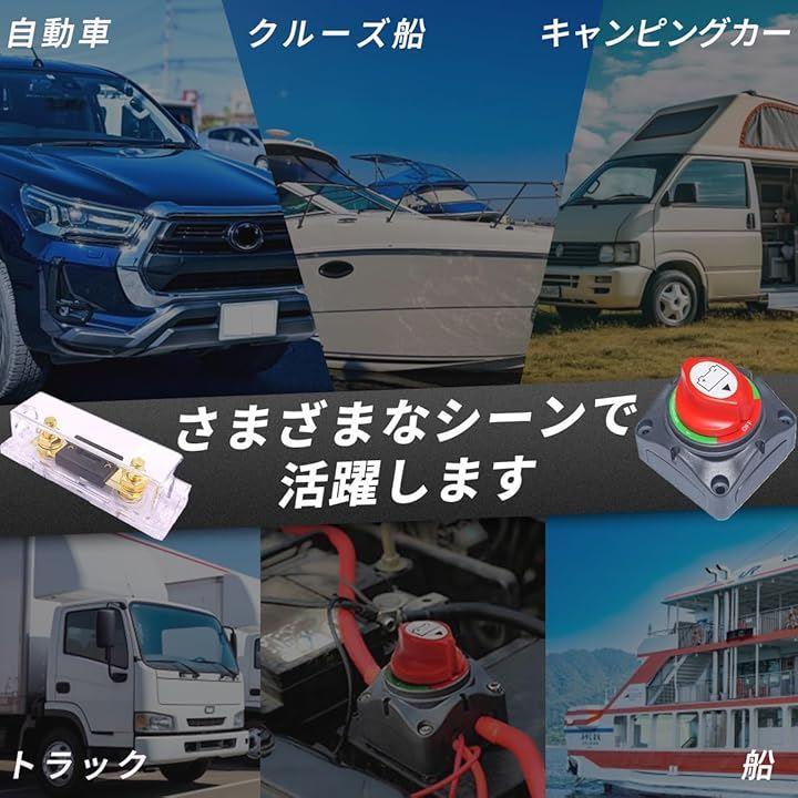 「多目的な用途と幅広い適用範囲」バッテリー切断スイッチは、自動車、バン、キャラバン、RV、トラック、ATV、UTV、船舶など、さまざまな車両や船舶で広く使用されています。