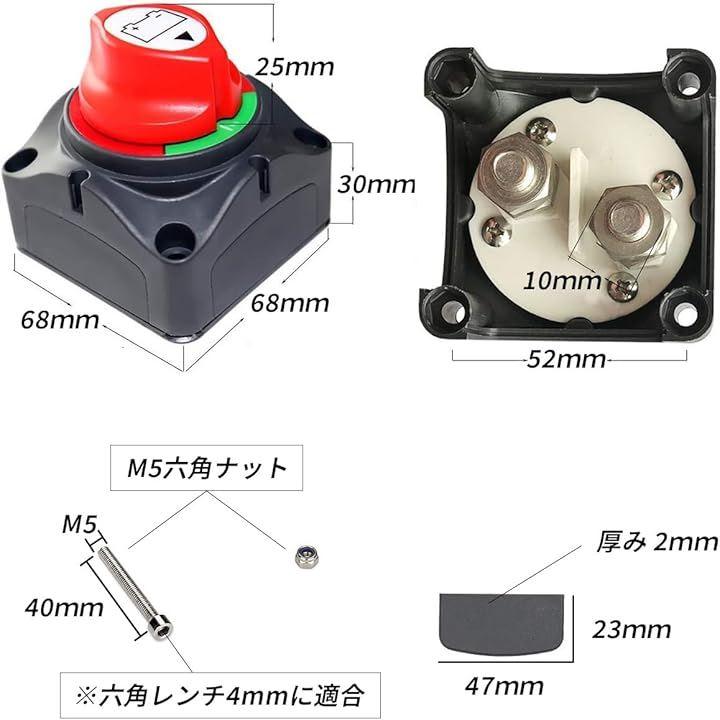 「簡単な取り付けと安全な設計」スイッチの取り付けは非常に簡単で、銅端子のボルトのサイズが10mm x 2という標準的なサイズであるため、自動車や船舶などのさまざまな車両に適しています。