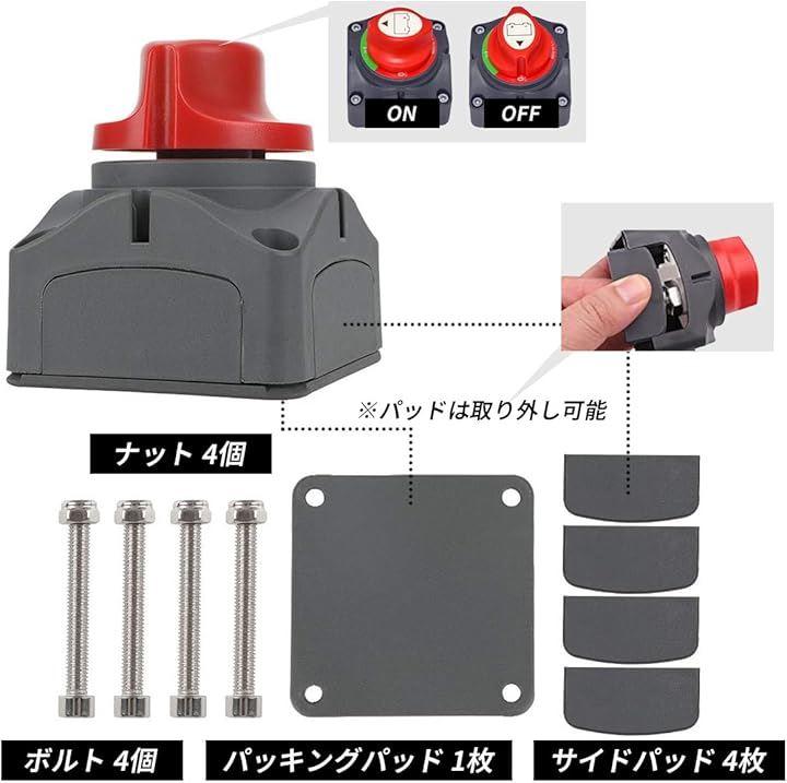 「簡単な取り付けと安全な設計」スイッチの取り付けは非常に簡単で、銅端子のボルトのサイズが10mm x 2という標準的なサイズであるため、自動車や船舶などのさまざまな車両に適しています。