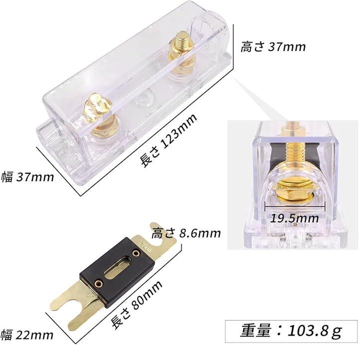 「60A、80A、50A、100Aか選べるANLヒューズホルダーがセット」高品質なANLヒューズが付属しており、カーオーディオやその他の大電流用途に最適です。