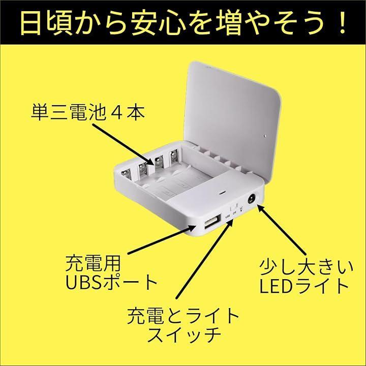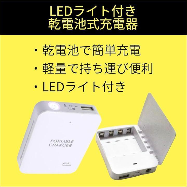 「乾電池でUSB充電」単三電池4本でUSB機器(ハンディファン、イヤホンなど)に充電でき、電源のない場所でも安心です。