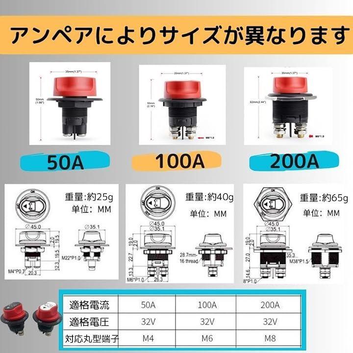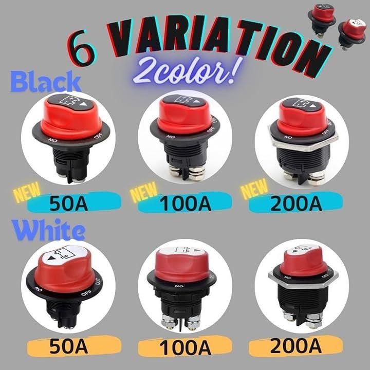 50A、100A、200Aがあり、ご要望の多かったNEWバージョンの黒色もご用意しておりますので、ご自身の車両に合わせてカラーとアンペアをお選びください。