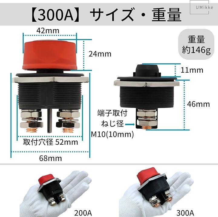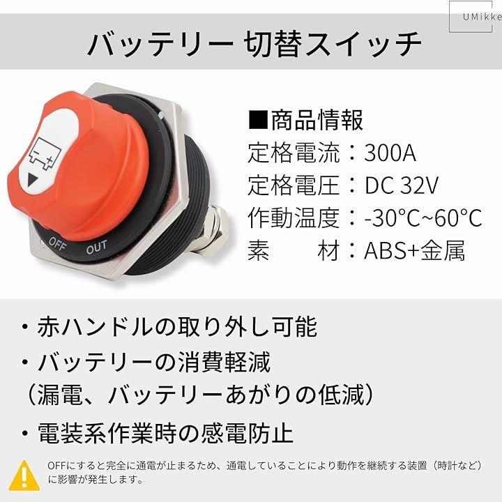 300A、32V DC、対応のバッテリースイッチ(カットオフスイッチ)になります。