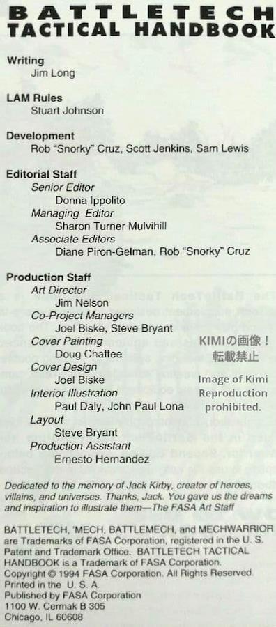 BattleTech Tactical Handbook 1994 FASA 8630 First Editionバトルテック タクティカル ハンドブック 1994 初版 ファサ 8630