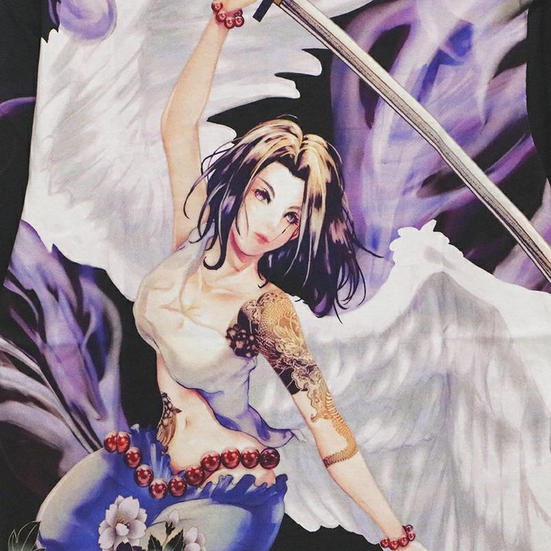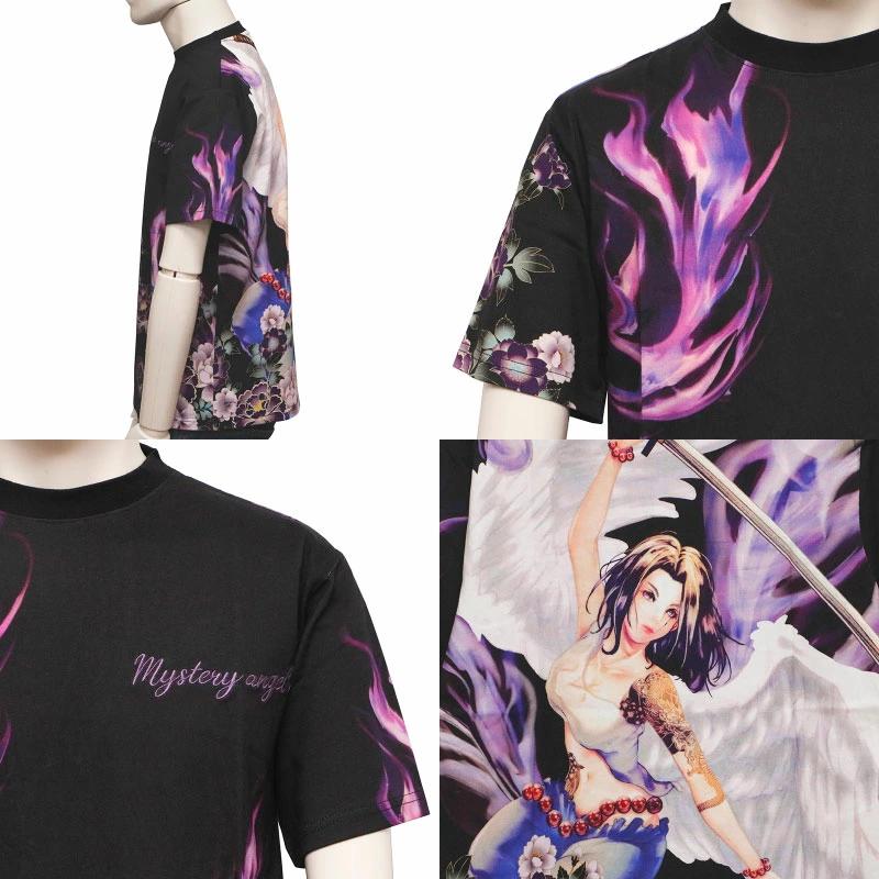Battomusume Beautiful Series Rin Angel Pattern Japanese Pattern Short Sleeve (232830) Japanese Pattern Short Sleeve T-shirt Battomusume Beautiful Girl Rin Angel Sublimation Transfer Black White