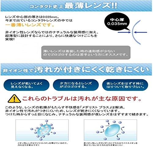「夕方になるとレンズが曇る。」「レンズが乾いてよく見えなくなる。」これらのトラブルは汚れが主な原因です。「メダリスト プラス」は非イオン性素材で汚れがつきにくいから、いつでもレンズがクリア。今までにない鮮やかな視界が一日中続きます。 「夕方になるとレンズがゴロゴロする。」「夜レンズをはずす時に、はりついて取りづらい。」このような、レンズの乾燥がもたらす不快感を「メダリスト プラス」は解消。非イオン性で汚れがつきにくいため、レンズが乾きにくくなっています。つけた時からすっと目になじみ、ナチュラルな装用感が夜レンズをはずすまで続きます。 レンズ中心部の厚さは0.035mm。非イオン性レンズならではのナチュラルな装用感に加え、超薄型に設計することにより、さらに快適なつけごこちを提供します。 レンズを取り出すときも容器から見つけやすくて、取扱いやすいから紛失防止にもなります。 1箱6枚入り 製造元:ボシュロム 非イオン性で汚れがつきにくいから、クリアな視界が一日中続く 非イオン性で乾きにくいから、長時間装用でも快適 中心厚0.035mmの超薄型で、より快適なつけごこち ライトブルーのレンズカラー 初めての人にも使いやすい2週間交換コンタクトレンズ【医療用具承認番号 21700BZY00019】
