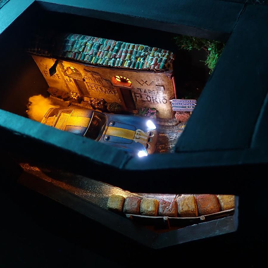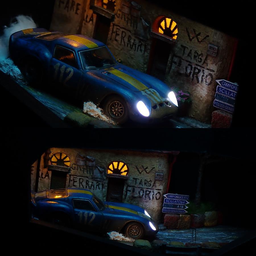 This is an original representation from Kawada's point of view of a race scene from the Targa Florio, a public road car race held on the Italian island of Sicily.