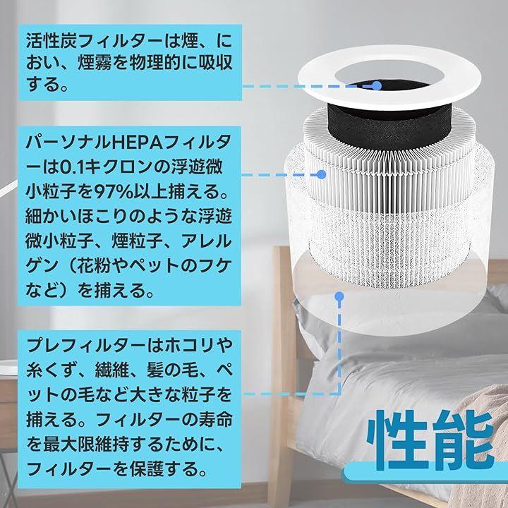 パーソナルHEPAフィルターは0.1キクロンの浮遊微小粒子を97%以上捕える。