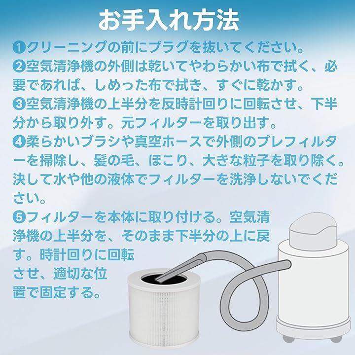 柔らかいブラシや真空ホースで外側のプレフィルターを掃除し、髪の毛、ほこり、大きな粒子を取り除く。