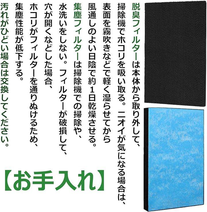 「脱臭フィルター機能」タバコの煙(ニオイ)、トイレのニオイ、生ゴミのニオイ、ペットのニオイなどの生活臭を吸着・分解する。