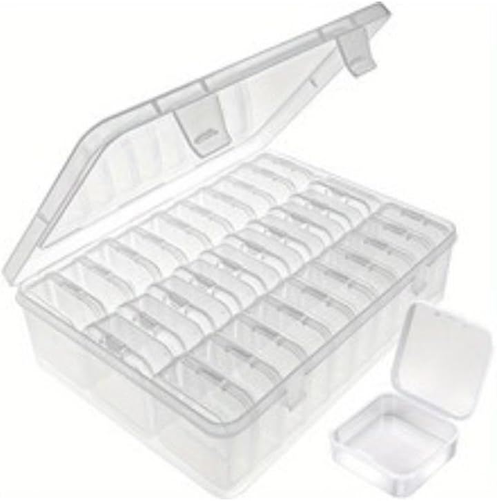 Bead Organizer Box, Compact, Portable, Hinged, Transparent, Mini Cases (30 cases), 1 Mother Case