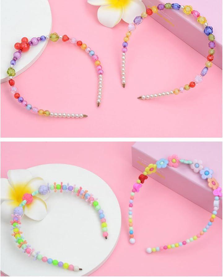 Beaded DIY Bracelet Craft Kit with Necklace, Stringing, and Colorful Headbands (24 Styles) - Includes Storage Case