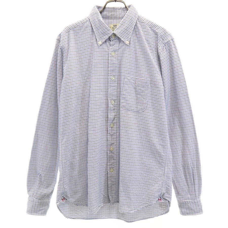 ビームス チェック柄 長袖 ボタンダウンシャツ XL ホワイト系 メンズ