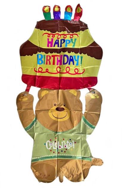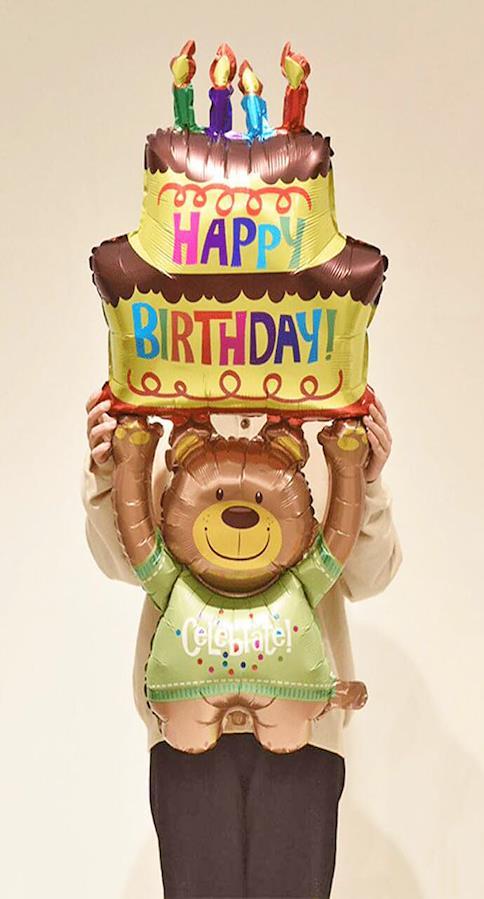 3営業日以内に発送≪新品未開封品≫バースデーケーキを持ったクマ型のアルミバルーンです。ストロー1本付属。
