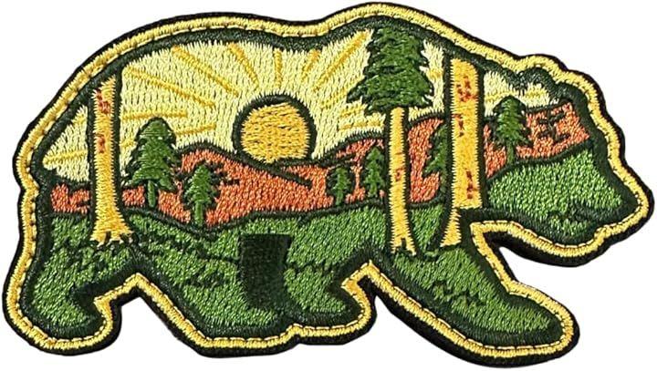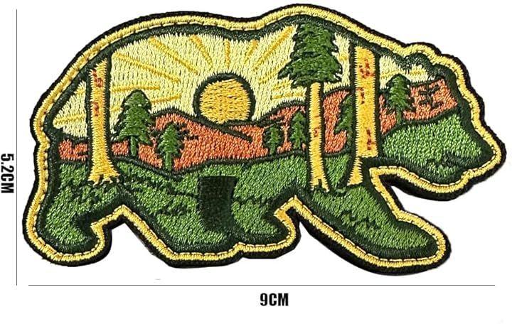 自然の雰囲気にマッチする、クマモチーフの面ファスナー付き刺繍ワッペンです。