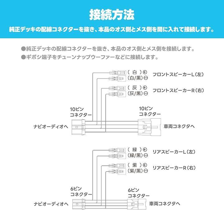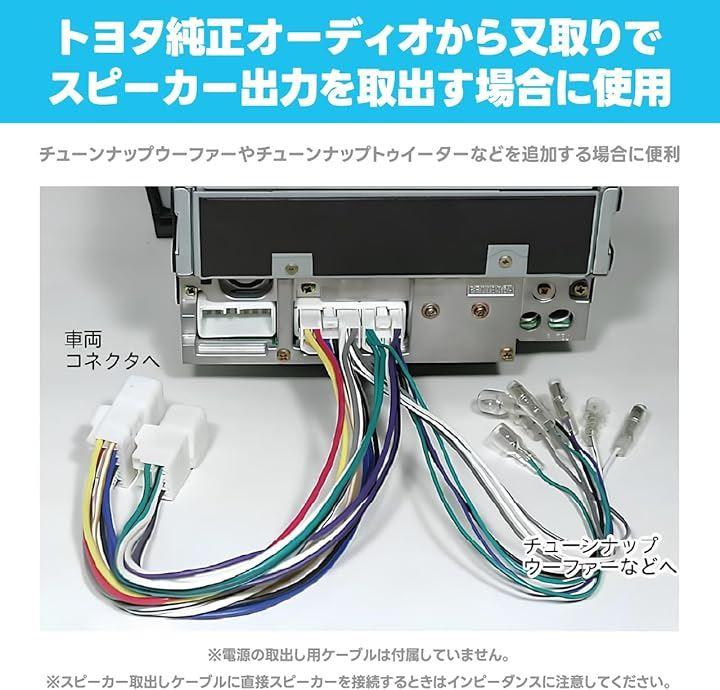 トヨタ純正オーディオから又取りでスピーカー出力を取出す場合に使用するケーブル