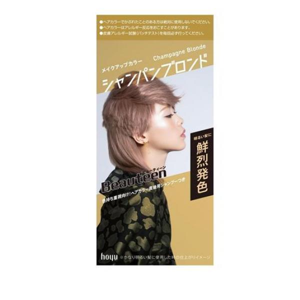 製品の特徴●ホーユー ビューティーン メイクアップカラー(hoyu Beauteen Make Up Color)●発色重視向け。こだわりの発色&色持ちで、明るい髪にしっかり発色するヘアカラー。●泡立つ乳液でムラなく染まります。●発色重視向け!ヘアカラー直後用シャンプーつき。●デリケートな髪をいたわるアフターカラー美容液(洗い流さないヘアトリートメント)つき。●乳液をもみ込むと泡立つから、髪全体にいきわたり、ムラなく発色!●ボタニカルオイル配合。ツヤツヤ発色!ヒマワリオイル(*)&ツバキオイル(*)配合。[*毛髪保護成分]●フレッシュフルーティの香り。●カラー:シャンパンブロンド