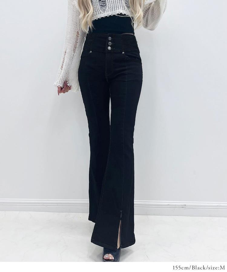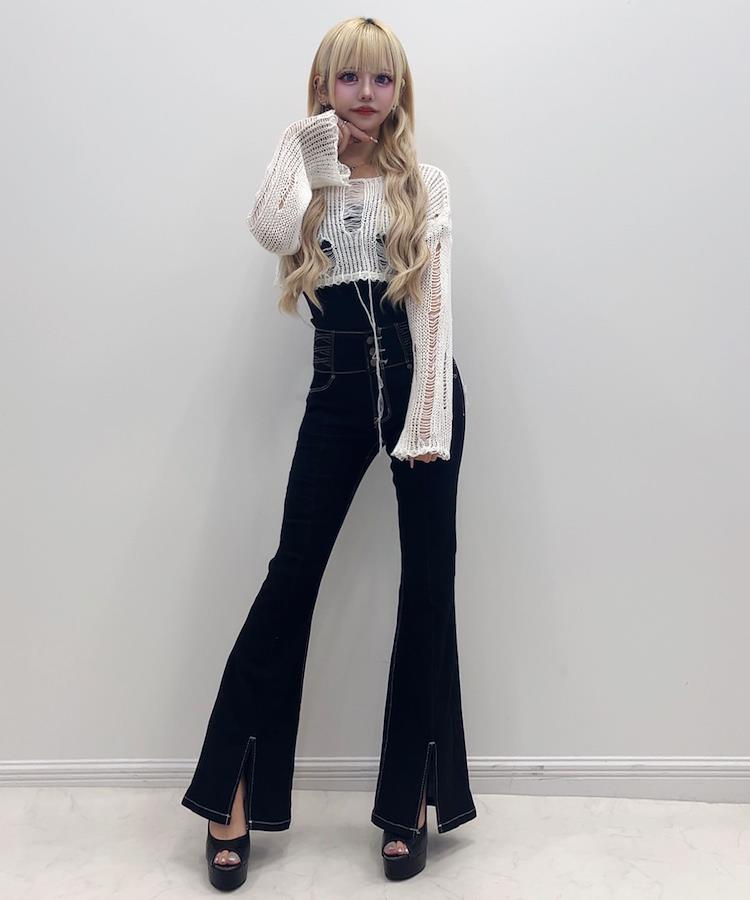 【美脚&スタイル爆盛れのフレアデニムで、ギャルのためのシルエット完成◎ウエストのレースアップが超あざと可愛くて、くびれ見せも余裕】