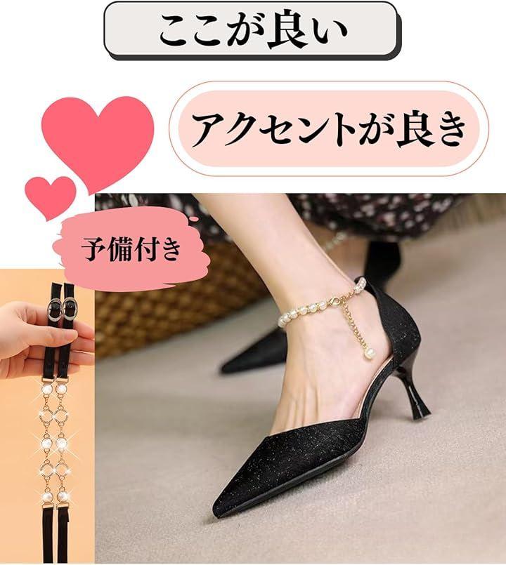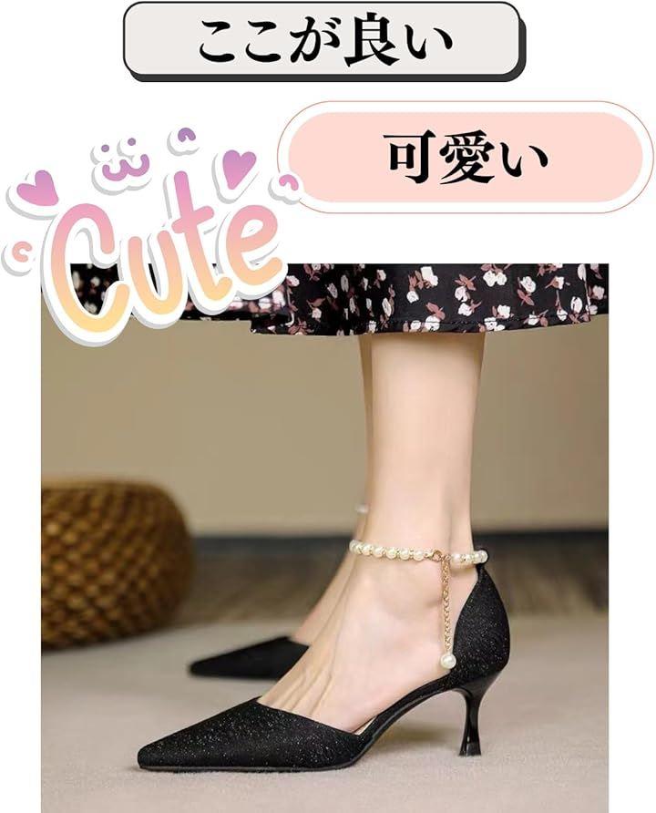 上品で洗練されたデザインで細身のヒールが脚を美しく魅せ、パール付きの装飾が上品な印象を演出。