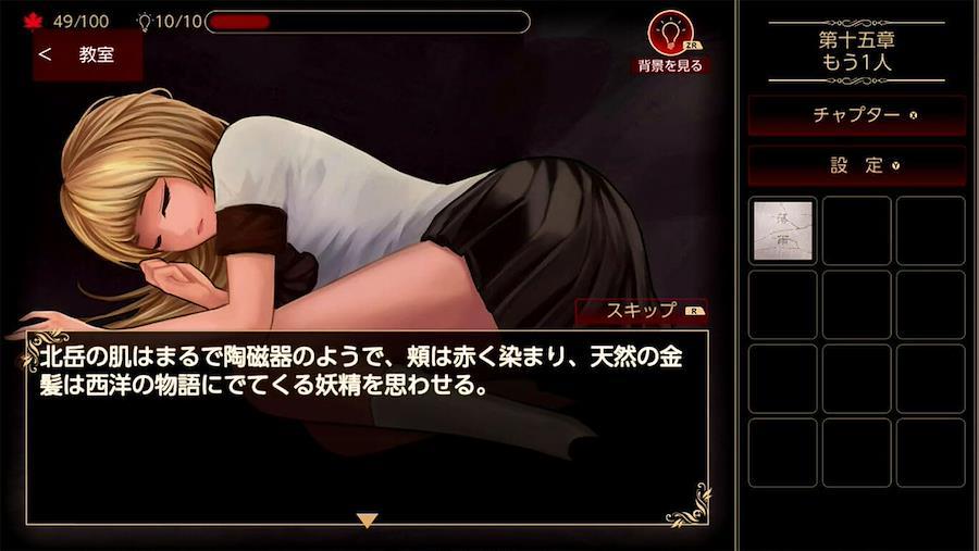 落雨落葉 Defoliation:老婆と幸薄そうな少女の秘密を探れ… 交通事故から始まる若者たちによる密室での謎解きサスペンスアドベンチャーゲーム。画面内を隅々まで探る探索型の謎解きで頭の体操になるパズルが出題されることも。謎を解くともらえる紅葉は画面内にも隠されており、試行錯誤する必要がるやり込み要素にもなっている。