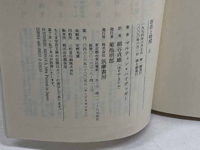 商品名:存在と時間〈上〉 (ちくま学芸文庫) 筑摩書房 マルティン ハイデッガー