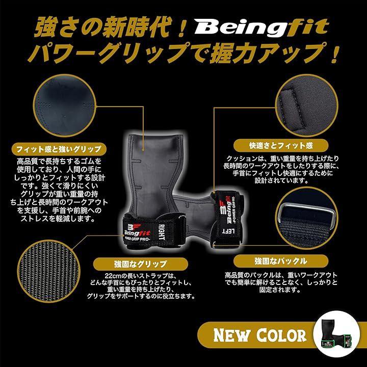 Beingfit パワーグリップ(男女兼用) 手のマメや握力の消耗で、狙った部位を追い込みきれない方に。