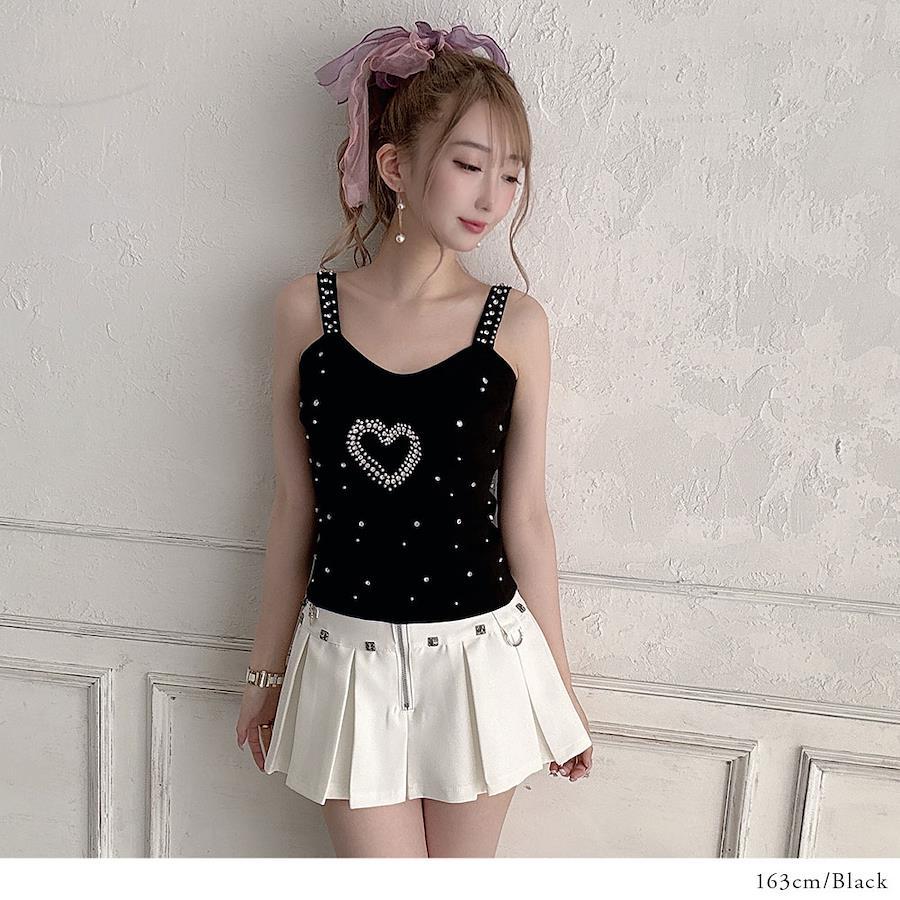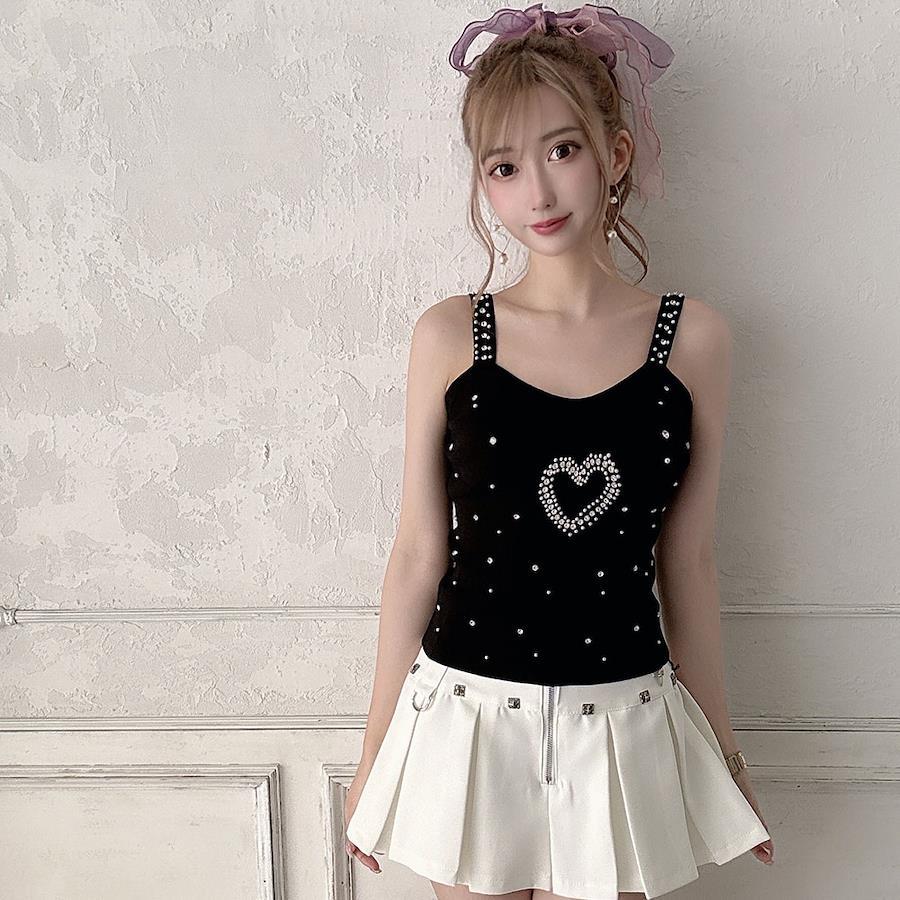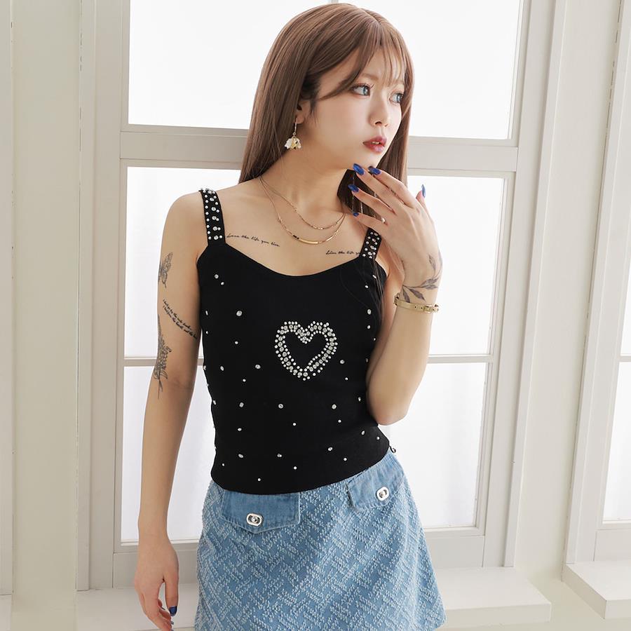 ◆Designビジューの華やかさとニット素材の柔らかさが融合した、フェミニンで可愛らしいキャミソール。さまざまなスタイルに合わせて着用でき、女性らしさを引き立てるアイテムとして活躍。一枚で存在感のあるアイテムです。デニムパンツやスカートと合わせてカジュアルなコーディネートにも◎