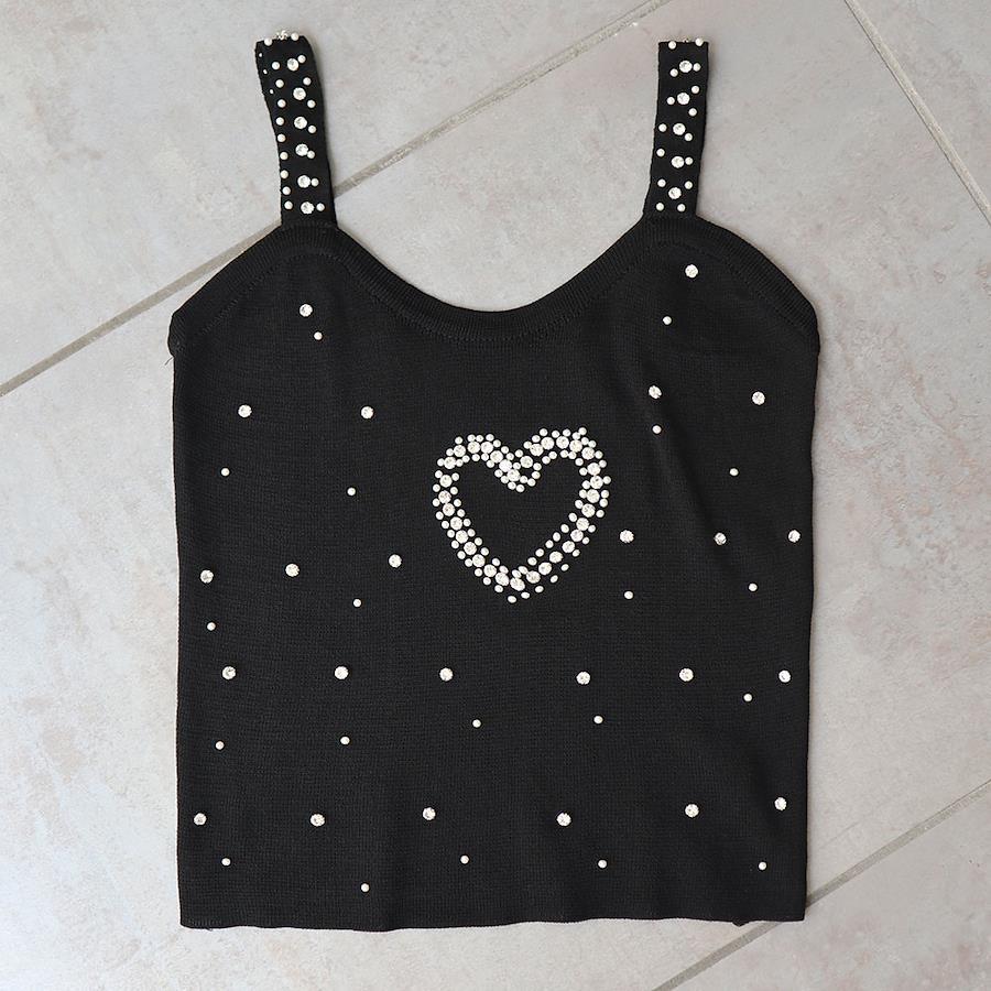 ◆Designビジューの華やかさとニット素材の柔らかさが融合した、フェミニンで可愛らしいキャミソール。さまざまなスタイルに合わせて着用でき、女性らしさを引き立てるアイテムとして活躍。一枚で存在感のあるアイテムです。デニムパンツやスカートと合わせてカジュアルなコーディネートにも◎