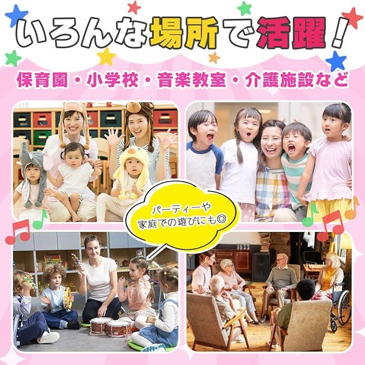 見た目にもカラフルで、子どもたちが自然に興味を持ち、音楽への関心やリズム感を育むきっかけに。