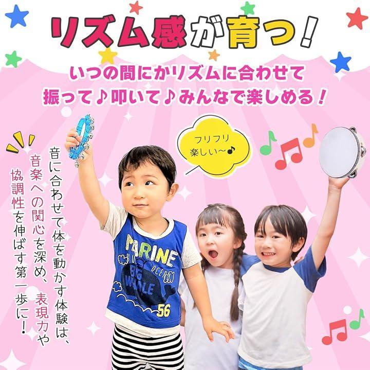 軽く振るだけで澄んだベルの音が広がり、タンバリンを叩けば明るく心地よいリズムが響きます。