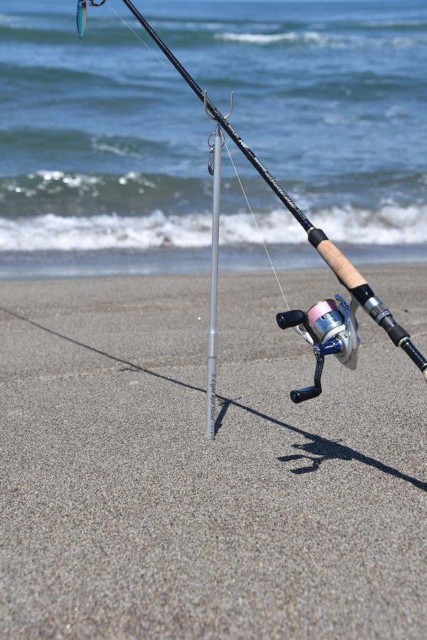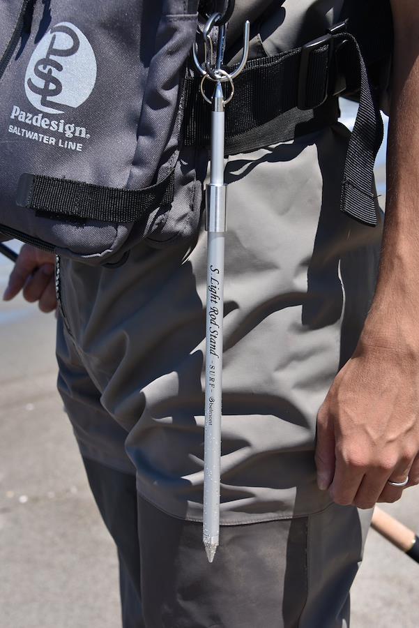 ルアーマン必携!アルミ製で軽量、コンパクトながら継ぎ目から尻栓までポールが長いので砂地にしっかりと刺しこめて安定感バツグンです!未使用時:軽量設計の為、フローティングベストに装着していても重さを感じさせません。長さ:42~65㎝調節可能、自重は驚異の92g