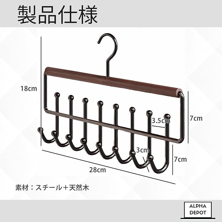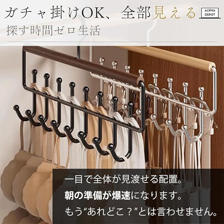 「落ちない・絡まない」U字フック構造で滑り落ちず、毎朝サッと取り出せてストレスゼロです