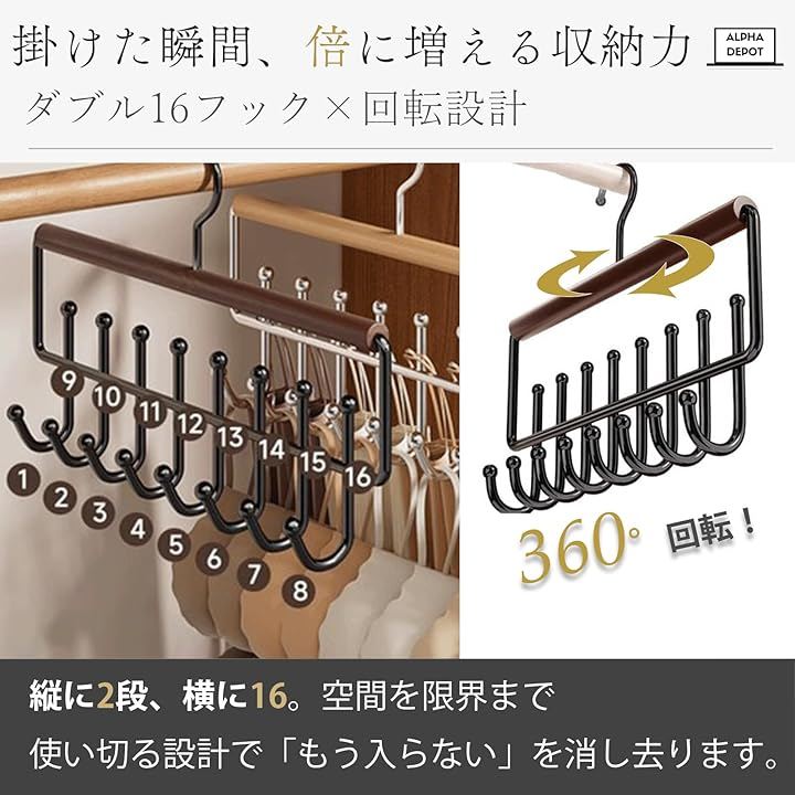 「16フック爆量収納」服1~2着分のスペースで最大16本まとめて整理。
