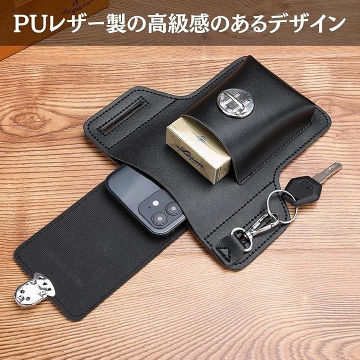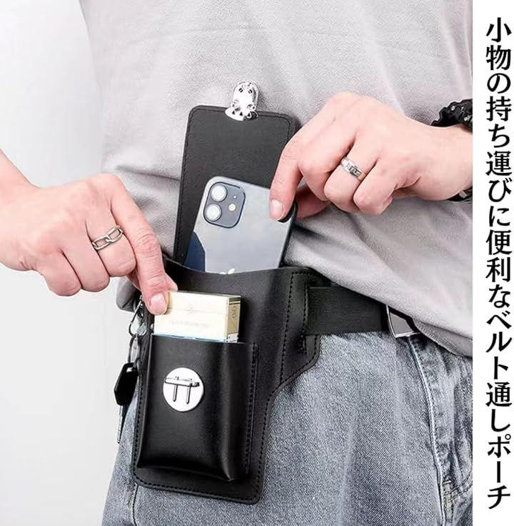 「スマホや小物の持ち運びに便利なポーチケース」約6.5インチまでのスマートフォン、タバコ、クレジットカード、名刺、現金、鍵などの必須アイテムをまとめて収納できる実用的なポーチケース。