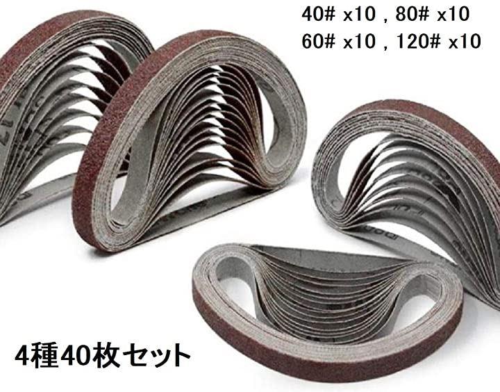 セット内容:エアーベルトサンダー交換用ベルトx40枚(40#、60#、80#、120#x各10枚)