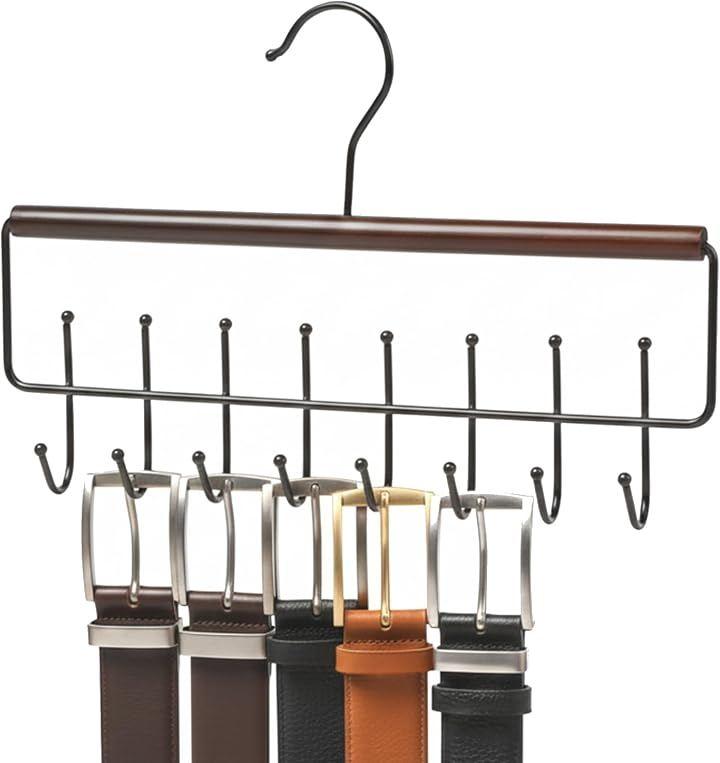 Belt Storage Hanger, Holds up to 16 Belts, Ties, Hats, Scarves, Space-Saving, Deep Groove Hooks