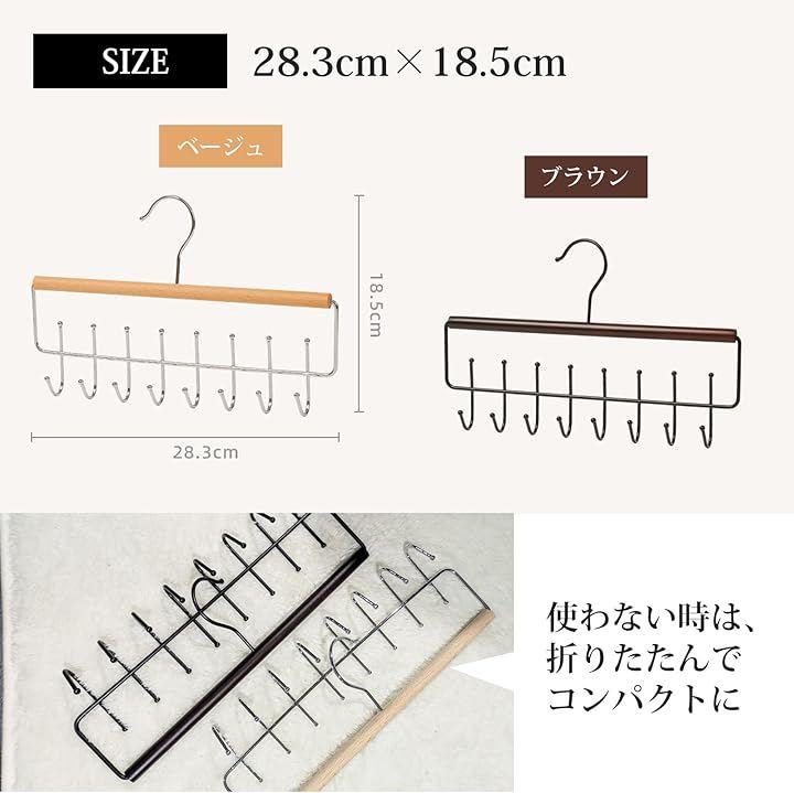 最大16個収納: ベルト、ネクタイ、帽子、スカーフなど最大16個をコンパクトに収納できるマルチハンガー。
