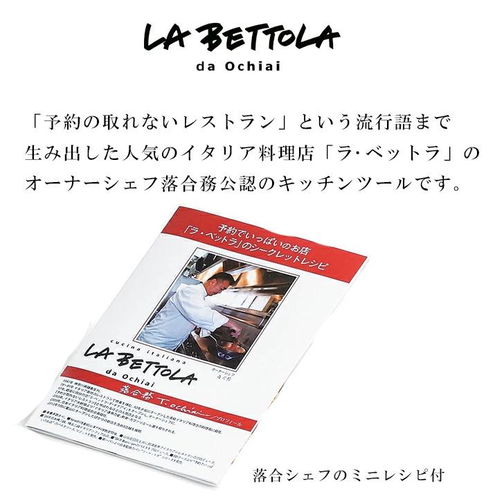 「予約の取れないレストラン」という流行語まで生み出した人気のイタリア料理店「ラ・ベットラ」のオーナーシェフ落合務公認のキッチンツールです。
