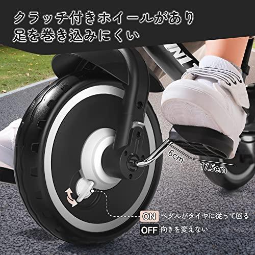 ??「本体の情報」手押し棒三輪車、ベビーワォーカー、普通の三輪車などのモード付き、本体の重量は5.4kg、耐荷重は25kg、サイズは78cm*45cm*55.5cmです。 ??「手押し棒」102cm、97cm、92cm、87cm四つの調節できる長さがあります。中の棒を抜き、73cmの長さの2段式モードになります。身長に合わせてピッタリ長さを調節できます。大人でもちょっと子供でも利用する事ができます。 ??「特殊の車輪」前輪はクラッチがあるので、走行中子供たちの足を守ります。ロックの状態で巻き込まれにくくて、心配しなくてもいいです。強いレジリエンスと環境保護材料を使って、一般より直径が大きい。 ??「精確の転向」ワイヤーで誤差ゼロのステアリング フレームの下でワイヤーあり、前輪と手押し棒を精確的に移動させる。赤ちゃんの安全を完璧に守ります。 ??「誕生日のギフト」プレゼントとして一番です。多様な機能があり、子供の要求に満足できます。