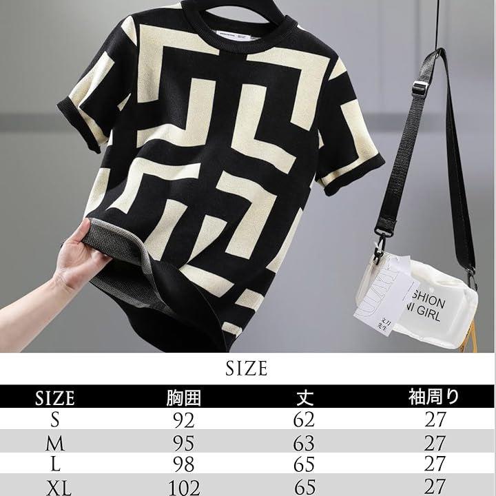 「デザイン」とてもおしゃれでかっこいい洗練されたデザインの半袖ニットTシャツ。 柄シャツでは珍しい幾何学デザイン。