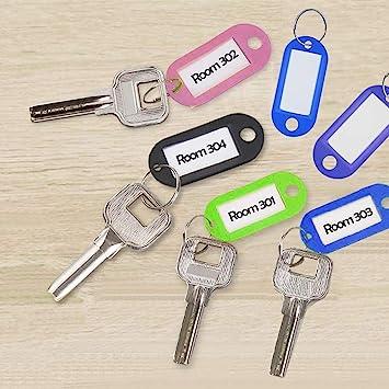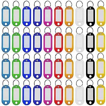 BetterJonny 120 Pcs Plastic Key Tags, Tags, Keychains, Name Tags, Plastic ID Luggage Keyring Tags