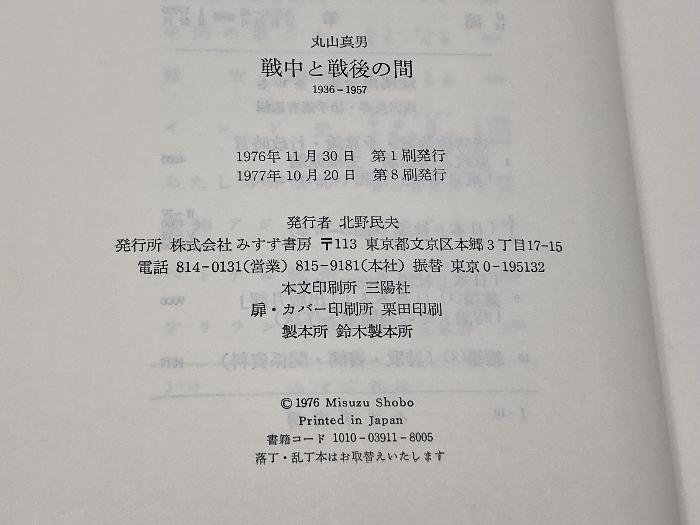 商品名:戦中と戦後の間 1936-1957 丸山真男 みすず書房