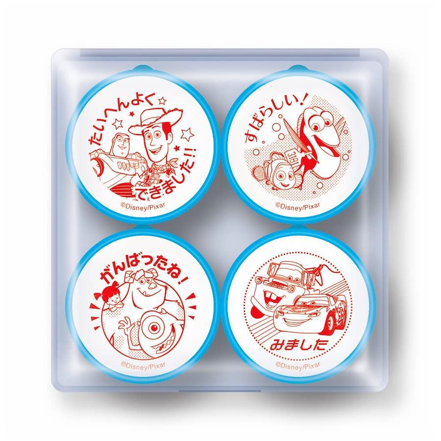 ピクサーの人気キャラクターのメッセージつきスタンプ4個セットです。