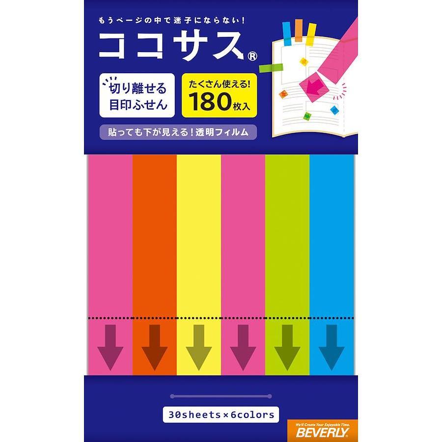 商品名:ビバリー 付箋 ふせん ココサス プラス フィルム ネオン 蛍光 スリム 180枚入 CS-138
