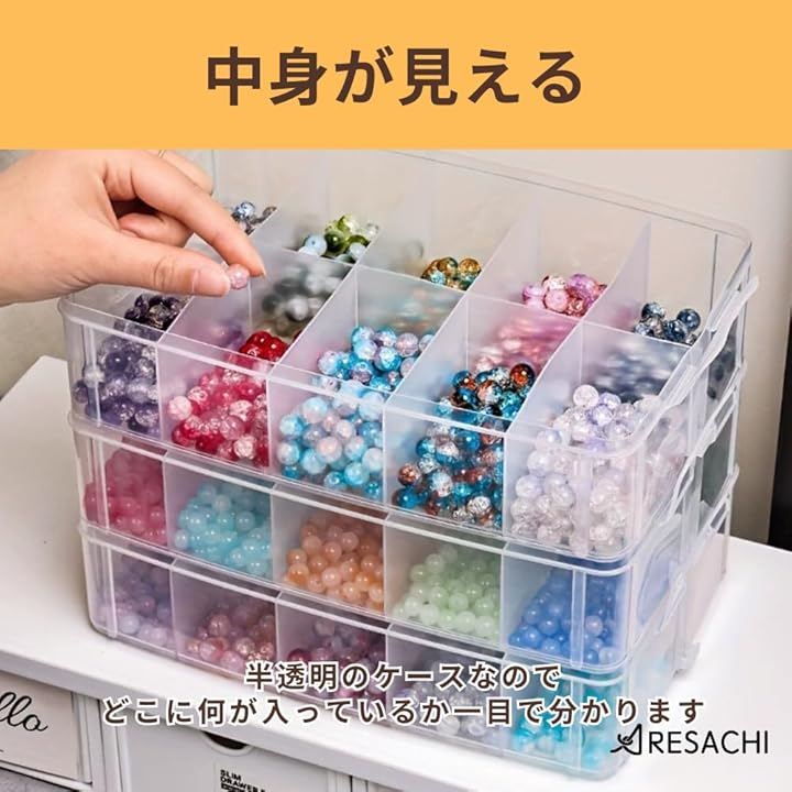 「中身が見えるクリア素材」半透明のケースなので、どこに何が入っているか一目で分かります。