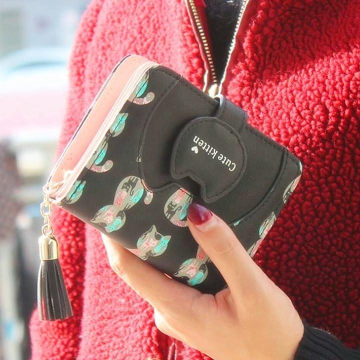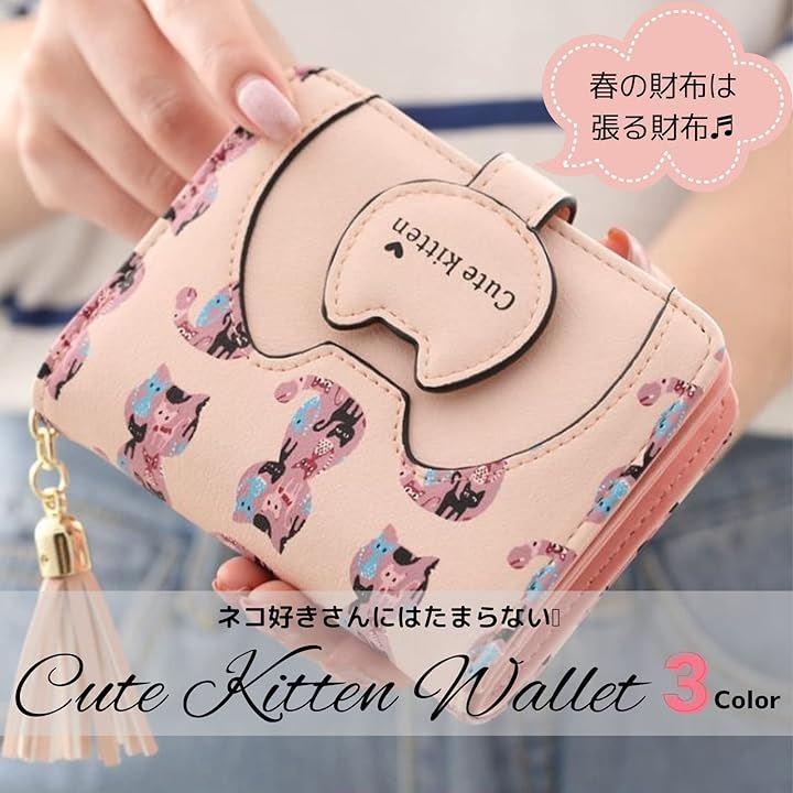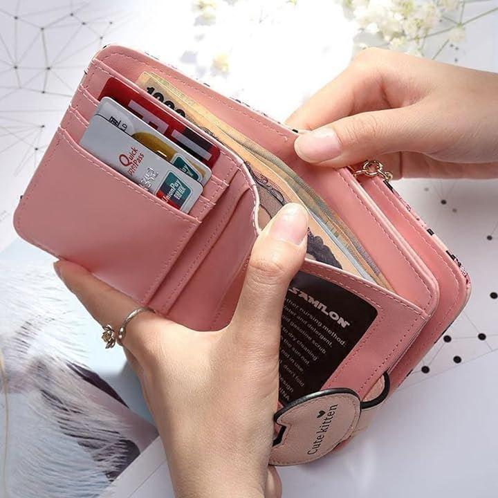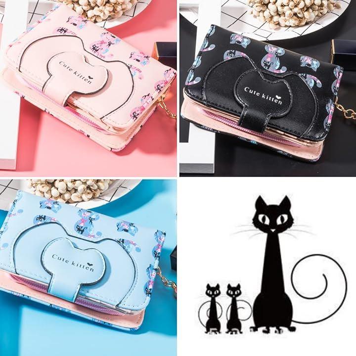 2つ折りタイプのおさいふ ネコのシルエットの中にさらに数匹の猫ちゃんがいる他にはない、猫好きにはたまらないデザインです