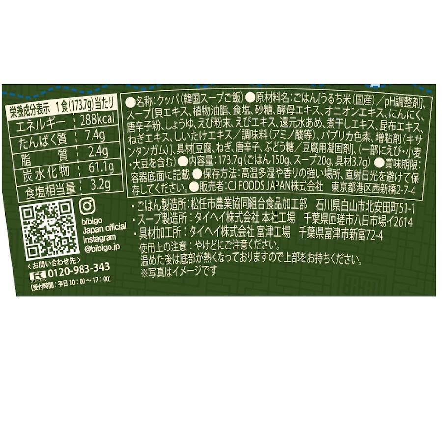 ビビゴ 韓飯 レンジdeクッパ 海鮮スンドゥブ 12個セットbibigo Instant Gukbap Seafood Tofu Soup 12 pack