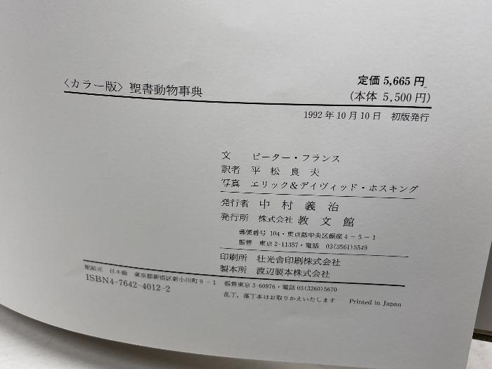 商品名:聖書動物事典 カラー版 教文館 ピーター フランス