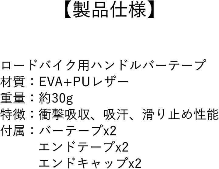 「製品内容」バーテープ2本、エンドキャップ2個、エンドテープ2枚 寸法:長さ2150mm、幅30mm、厚み2.5mm、重量:75g