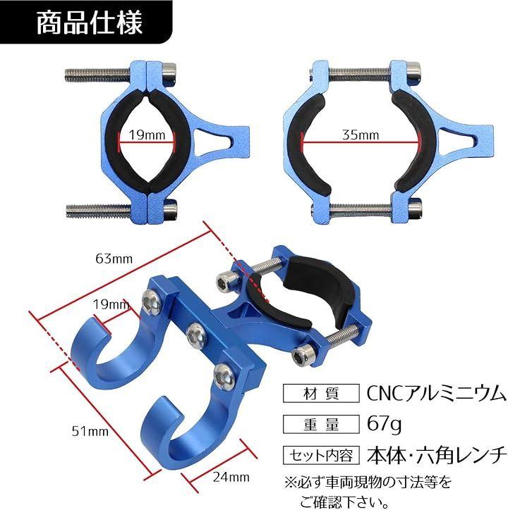 「商品仕様」ハンドルフック3色「適応バーサイズ」径:19~35mm「材質」CNCアルミニウム合金「重量」67g
